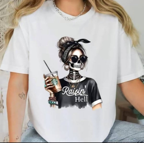 Gildan T-Shirt Get ready to rock the underworld with our Rising Hell Skeleton T-Shirt! Featuring a bold skeleton design, this shirt is perfect for those who want to add a touch of dark humor to their wardrobe. Comes in all sizes. Release your inner rebel and rise above the mundane!