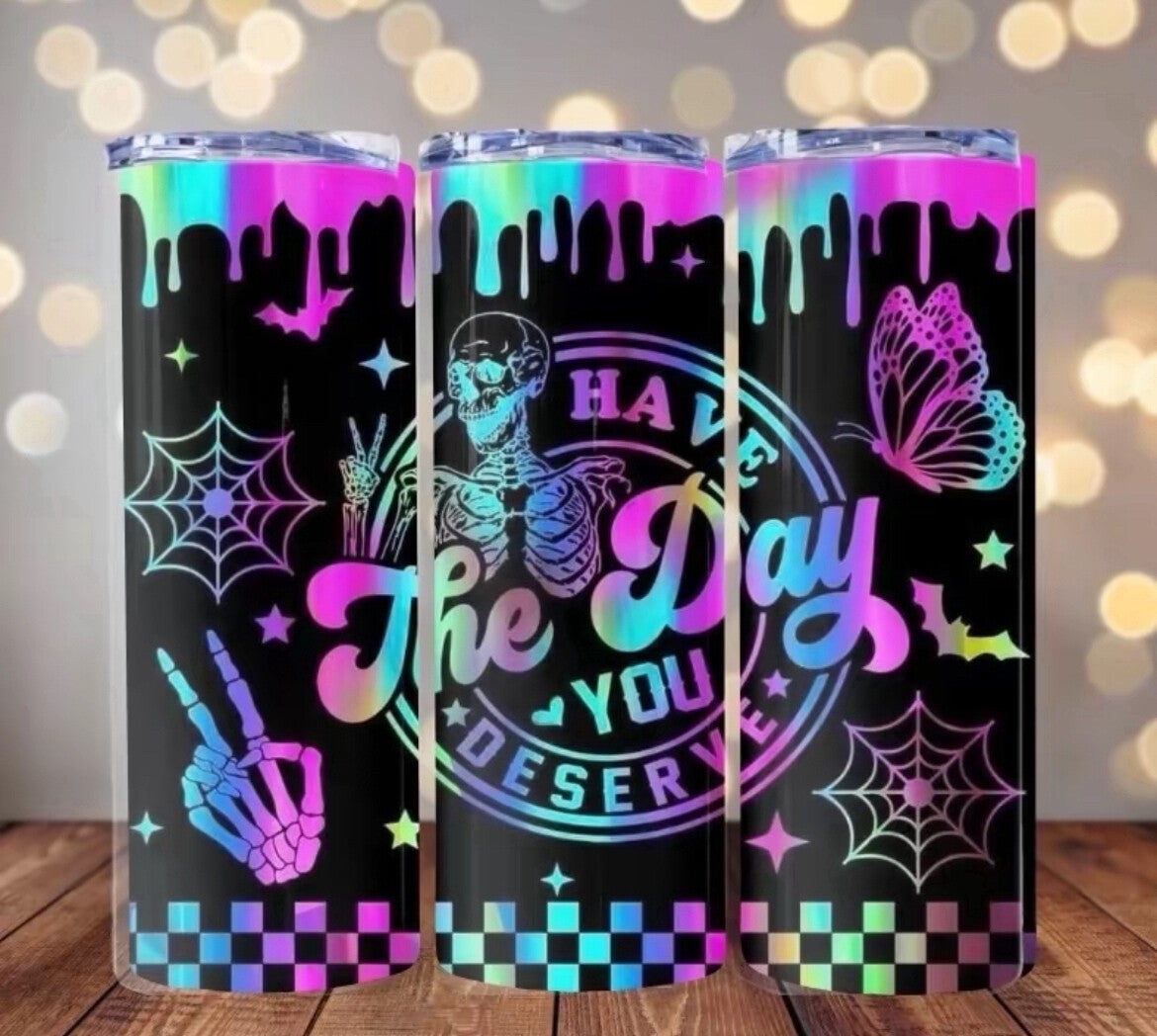 20 oz Stainless Steel Tumbler "Get ready to have the day you deserve with our convenient and stylish tumbler! Perfect for keeping your drinks at the perfect temperature while you conquer your day like a boss. Sip, sip, hooray!"