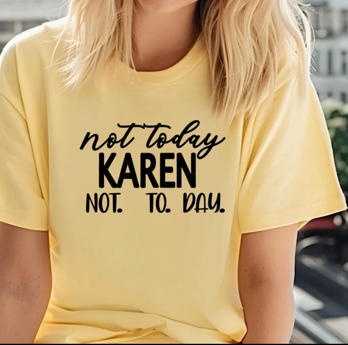 Cotton Gildan T-Shirt Unleash your playful side and show Karen who's boss with our Not Today Karen Not. To.Day. T-Shirt. Made with high-quality materials, this shirt is as comfortable as it is stylish. Perfect for anyone who loves to add a touch of humor to their everyday wardrobe. (Limited quantities available, so don't miss out!)