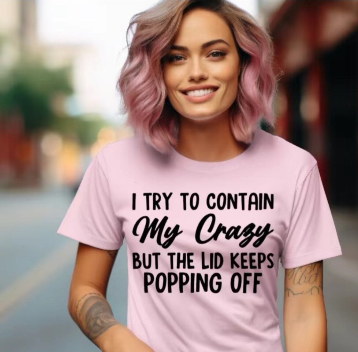 This product is made of 100% cotton, providing a comfortable and breathable experience for the user. Its high-quality material ensures durability and longevity even with regular use. Experience comfort and style with our "I Try To Contain my Crazy But The Lid Keeps Popping Off" product. Cotton Gildan T-Shirt.