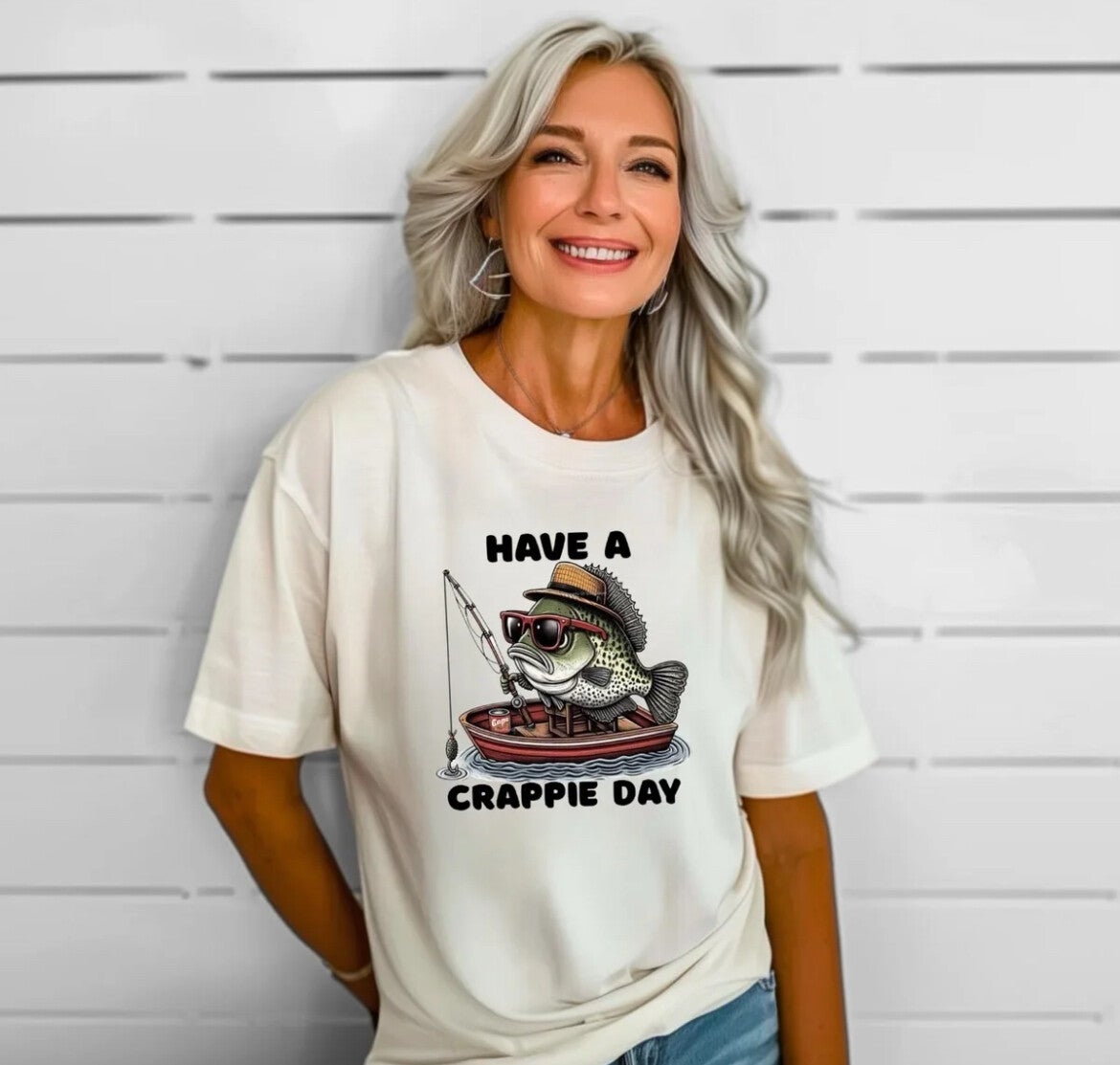 Spread positivity and humor with our "Have a Crappie Day" t-shirt! Featuring a playful pun and a comfy fit, this shirt is sure to brighten anyone's day. Perfect for casual outings or lounging at home. Survive any bad day with this fun and lighthearted t-shirt.Cotton Gildan T-Shirt