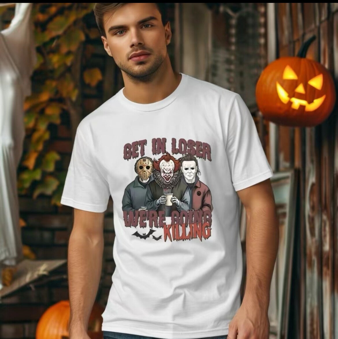 Hop in and join the fun with our "Get in Loser we're going Killing" T-Shirt! With its playful and quirky message, you'll stand out from the crowd and make a statement anywhere you go. It's the perfect addition to any casual outfit and is sure to bring a smile to your face. Don't miss out on this killer tee!