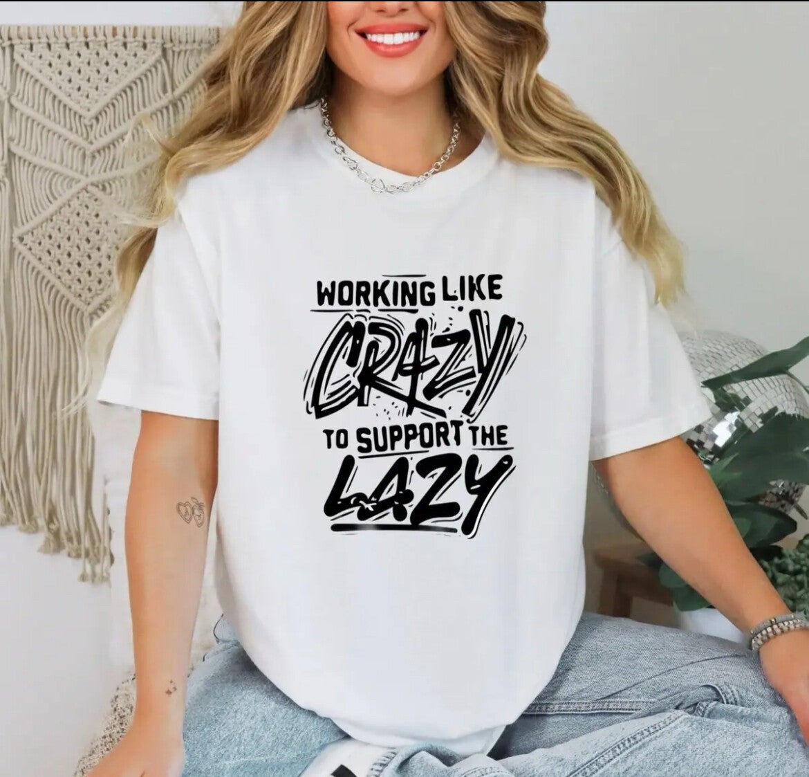 Gildan T-Shirt Get ready to kick back and relax in style with our "Working Like Crazy To Support The Lazy" T-Shirt. Made with exceptional quality, this shirt is perfect for the hard-working soul who deserves a little rest and relaxation. So go ahead, treat yourself to some well-deserved downtime and let this shirt do all the talking for you.