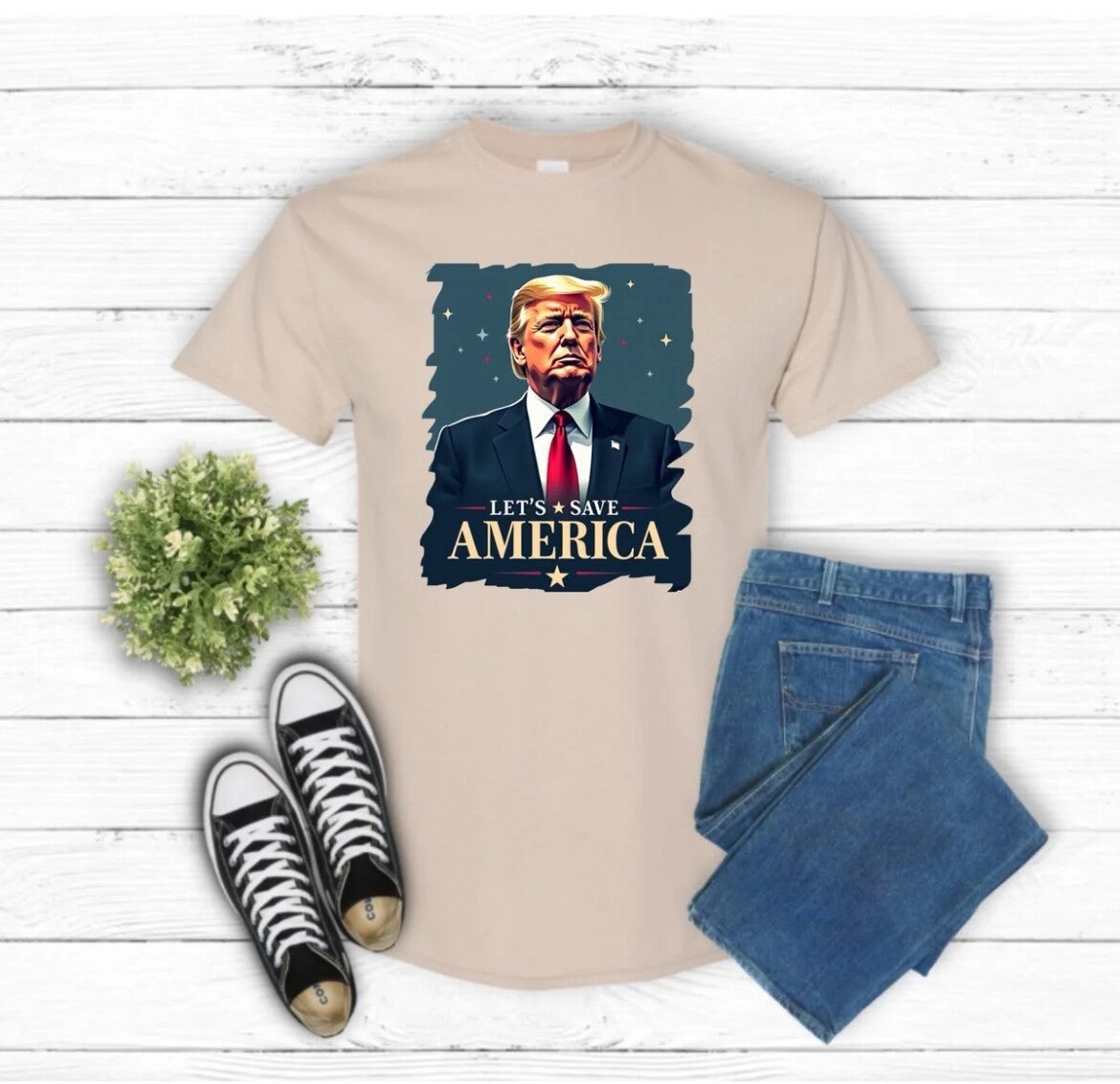 Let's Save America, Trump Gildan T-Shirt. With Six Colors To Choose From.