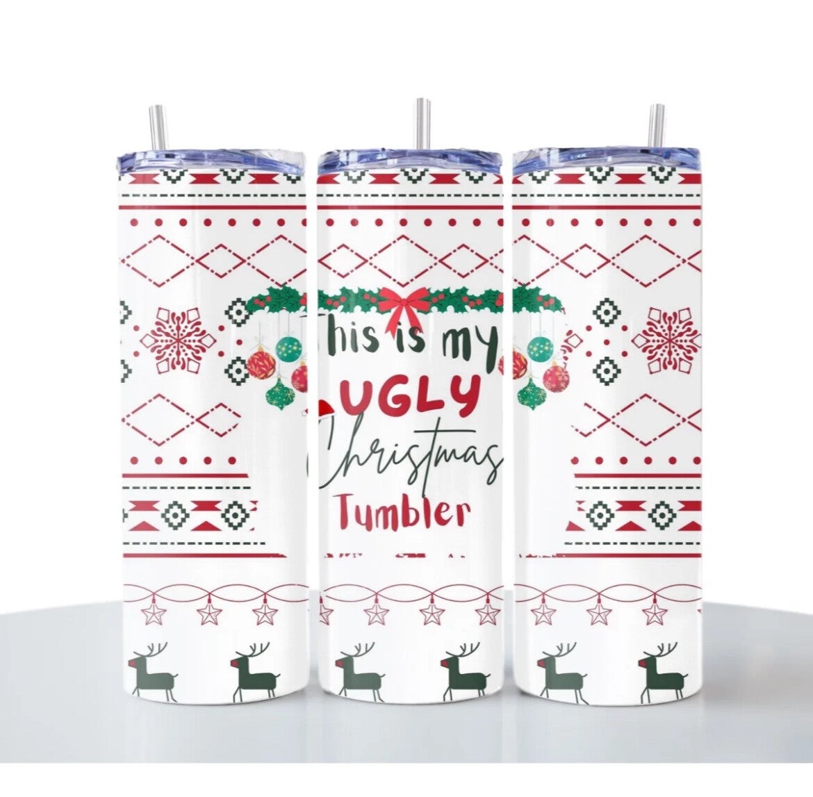 This is my Ugly Christmas tumbler on a 20oz Stainless Steel Tumbler.