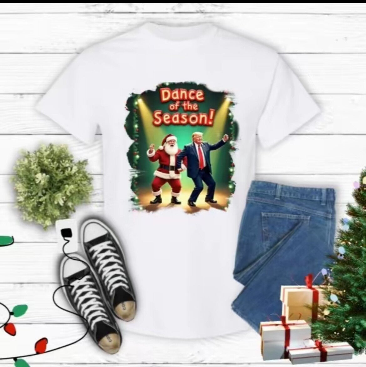 Dance Of the Season with Santa And Trump on a Gildan T-Shirt.