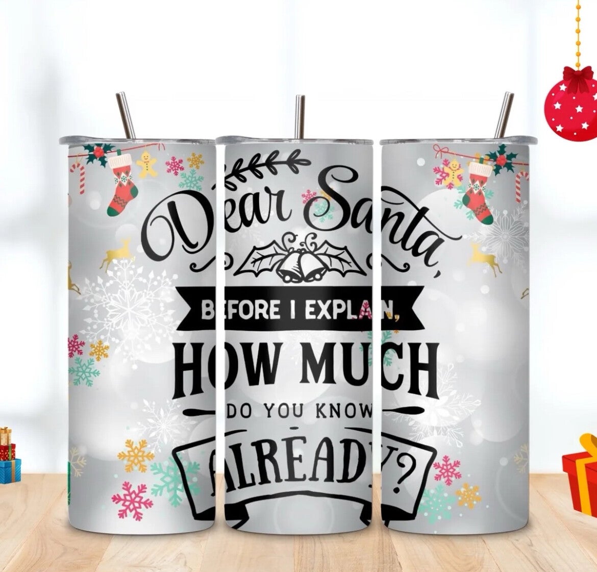 Dear Santa Before I Explain How much do know Already 20 oz Stainless steel Tumbler.