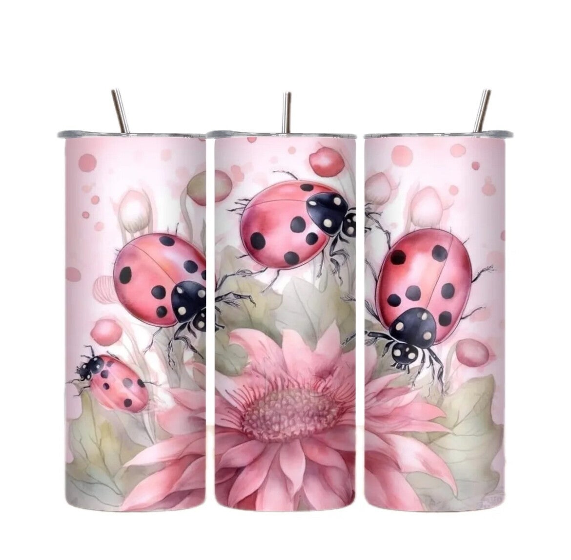 Ladybug on a 20oz Stainless Steel Tumbler.