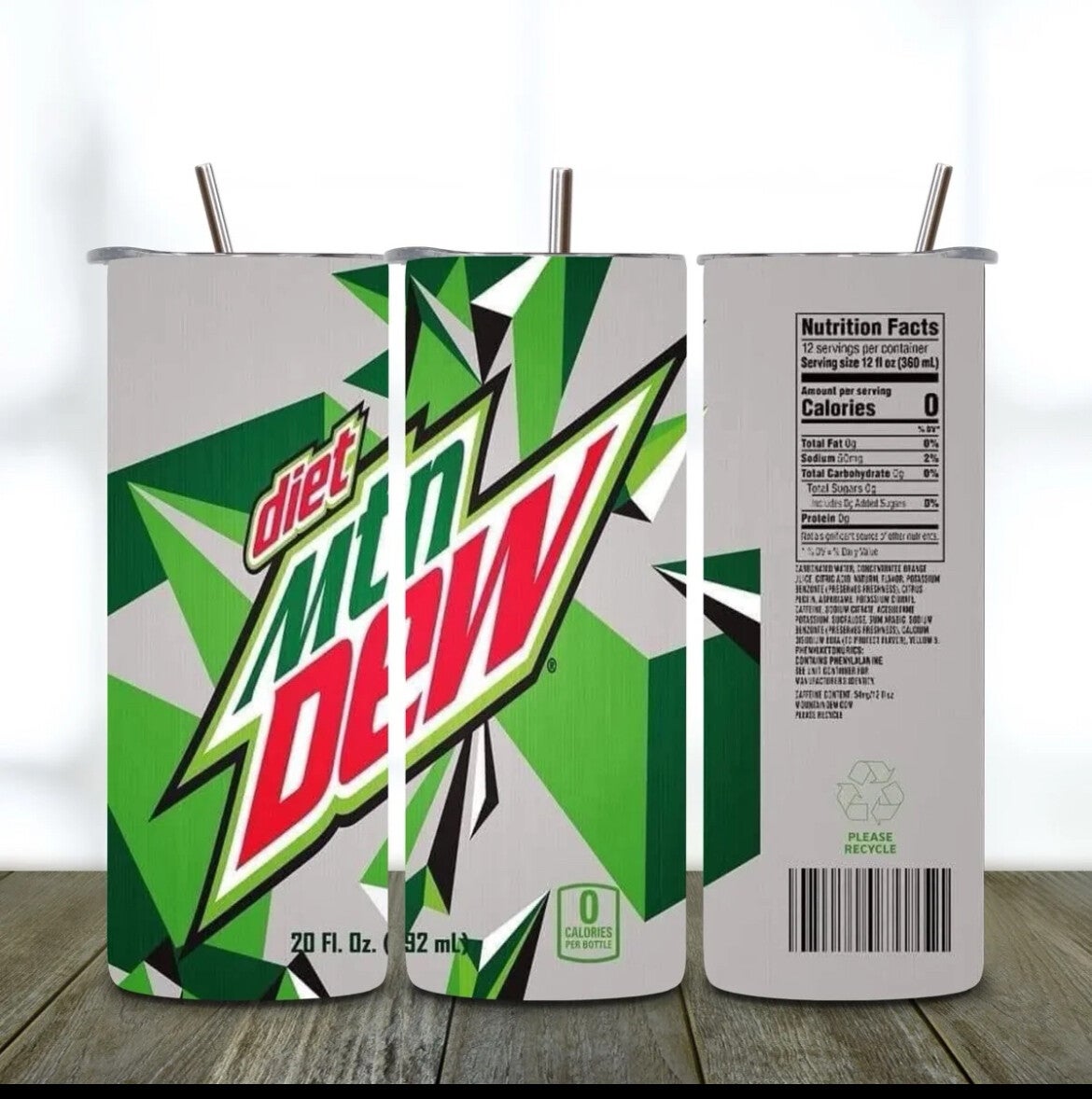 Diet Mt Dew on a 20 oz Stainless steel Tumbler.