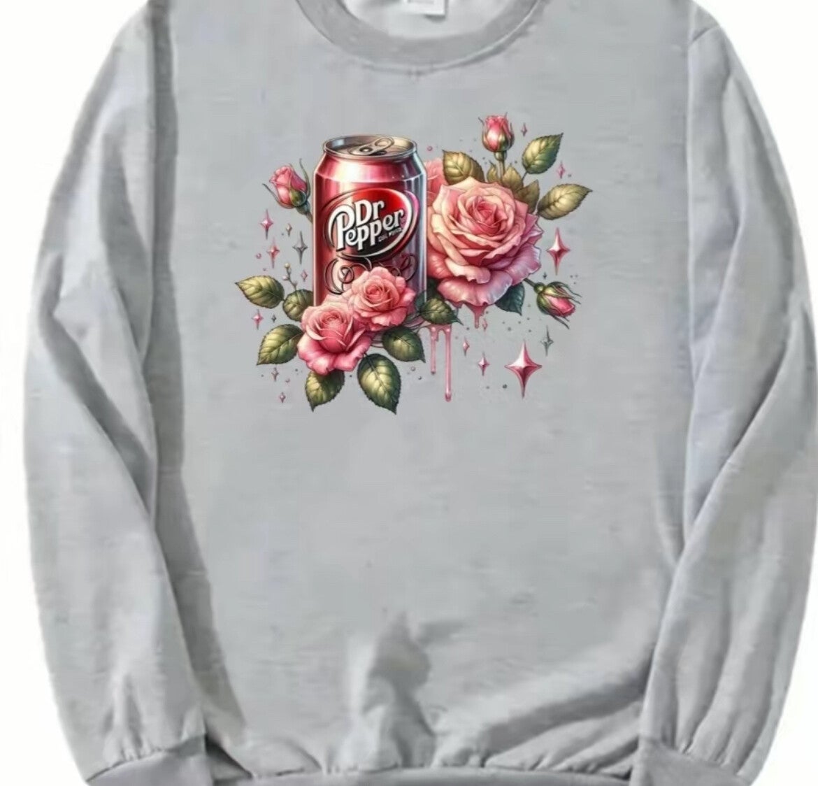 Dr Pepper and Roses on a Gray Sweatshirt