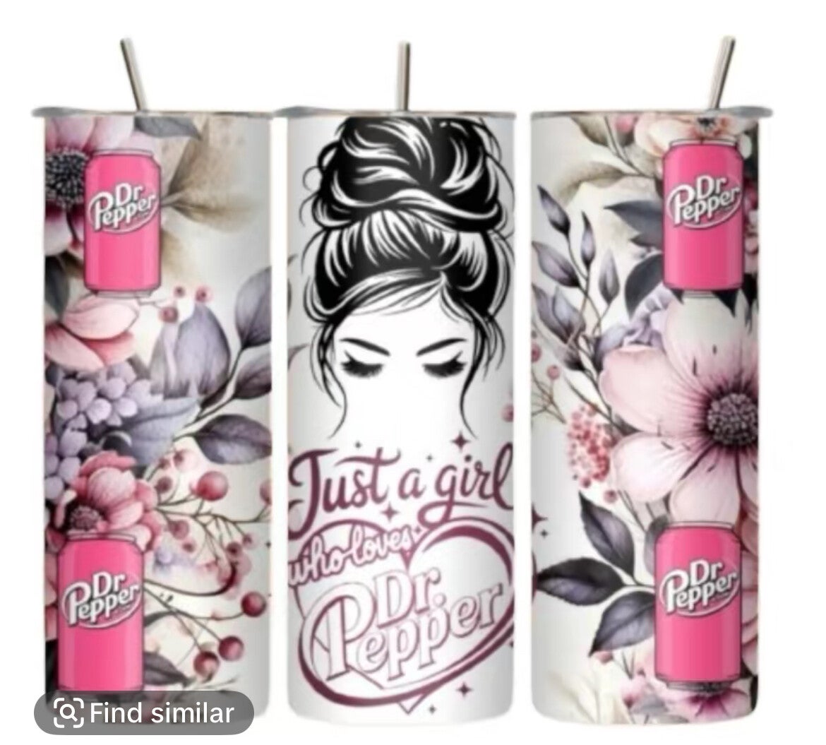 Just a Girl who loves Dr Pepper on a 20 oz Stainless Steel tumbler