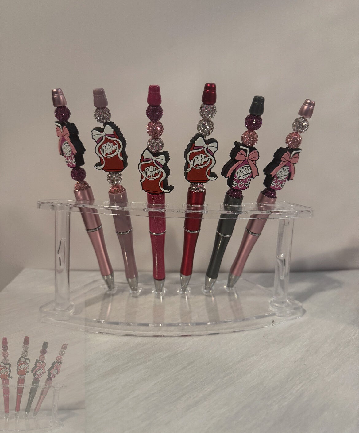 Themed pen set . 6 pens and a stand.